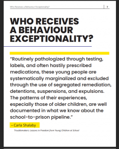 This section, placed right after the different categories of mental illness, brings the reader face-to-face with the human aspect of our work. It invites educators to think intentionally and deeply about why it is important to apply an anti-oppressive lens to behaviour needs in this way: